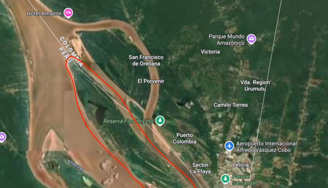 Frontera entre Perú y Colombia. Foto: GOOGLE